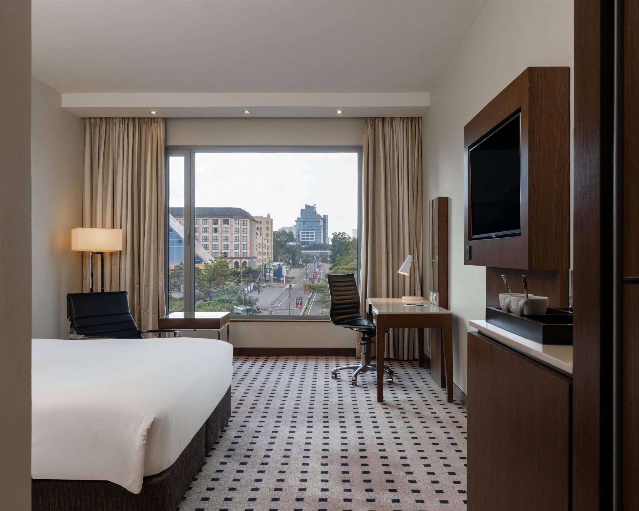 Located just 10 minutes from the airport, the Radisson Blu Hotel, Nairobi Upper Hill, is in the heart of the fast-growing business district of Upper Hill. We're the perfect base for a business trip or a Kenyan safari—Nairobi National Park is just 20 minutes away.Our 271 rooms and suites offer lovely city or park views and you can start each morning with a nutritious breakfast buffet. Our restaurants and bars offer both all-day dining and an elevated fine dining experience.We have one of the largest meeting facilities in Kenya, with 14 versatile meeting rooms, perfect for business travelers. Stay in shape during your Nairobi trip at our modern gym and bask in the warm African sun or cool off with a refreshing dip at our scenic swimming pool.