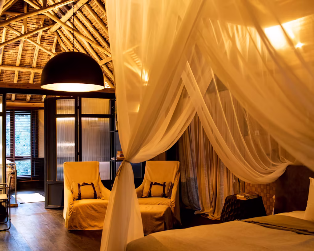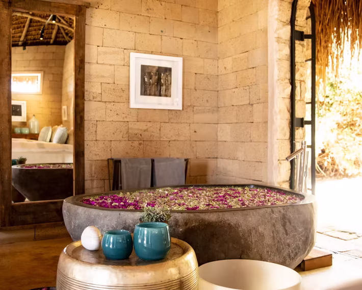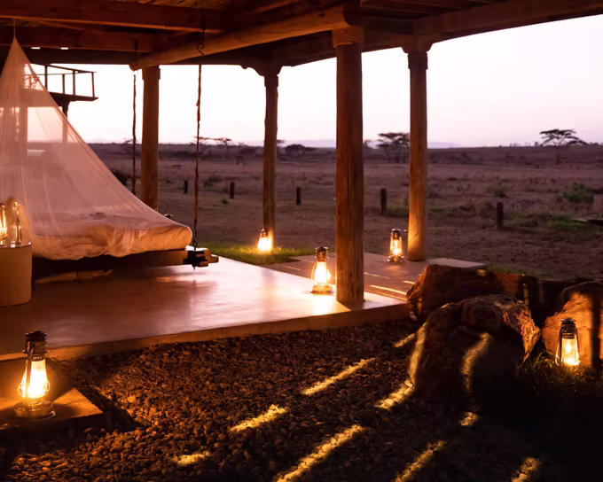 Segera Retreat is a splash of green in a golden savannah. With a legacy of true Kenyan ranch life set against the filmic grasslands that landscape the foothills of Mount Kenya, Segera has been rejuvenated into a fertile home for conservation, community, culture and commerce. Behind a living cactus boma, the lush gardens flicker with sunbirds and inspire with sculptures, pools and elegant thatched villas.