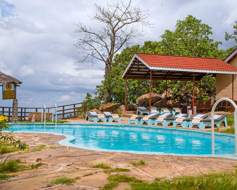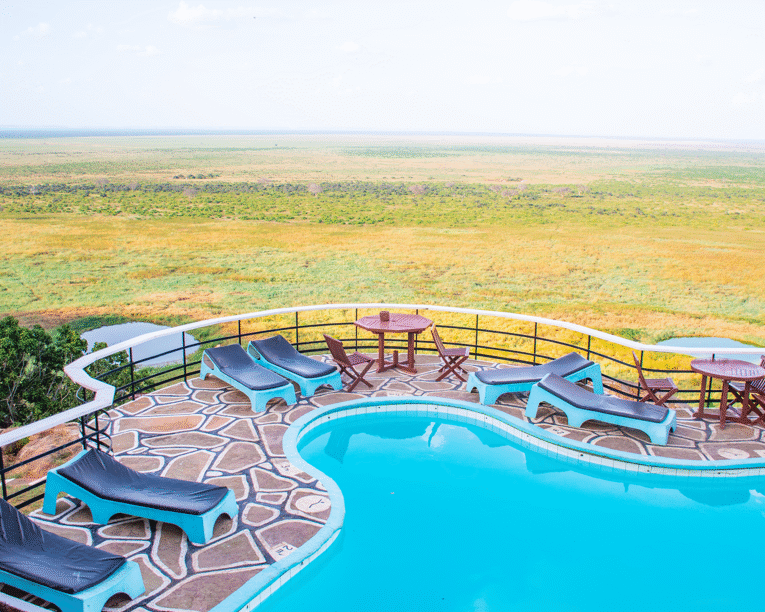 Strategically situated in one of the world’s largest Game Park- the Tsavo East National Park. The lodge is one of the most innovatively conceived and constructed wildlife retreats in Kenya. One can view a wide variety of game coming to and from the nearby water holes throughout the day from every corner. The panoramic outlook is spectacular and offers a serene view of the park.